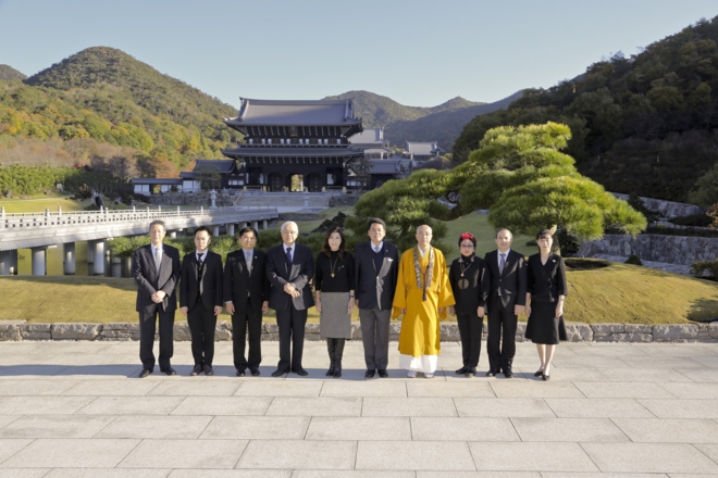 駐日タイ王国特命全権大使タナーティップ・ウパティシン閣下が、令夫人・御母堂・大使館高官の方々と共に、総本山「佛教之王堂」に参詣されました。御一行は、美しい日本庭園を歩まれ、タイ王国国王陛下・法王猊下を始め、全世界から奉納された仏像に礼拝され、紅葉の鮮やかに映える五重塔を巡られるなど、御参詣の間じゅう感嘆の声をあげられ、仏教の聖地にお参りできたことに感激されました。