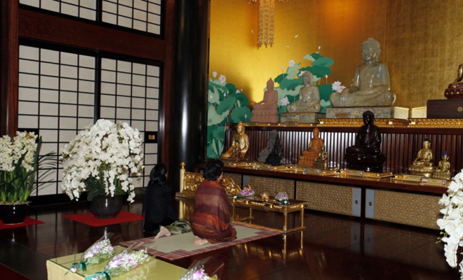 現国王、ノロドム・シハモニ陛下が、日本国国賓として天皇皇后両陛下の御招待で来日された際、シハモニ国王陛下は、御自らが帰依し、仏像と経典を奉納されている「佛教之王堂」にどうしても参詣したいと強く願われ、今までの国賓の中で前例のない国賓御日程の中での御参詣を、外務省によって承認され、シハモニ陛下は念佛宗総本山「佛教之王堂」を参詣されました。