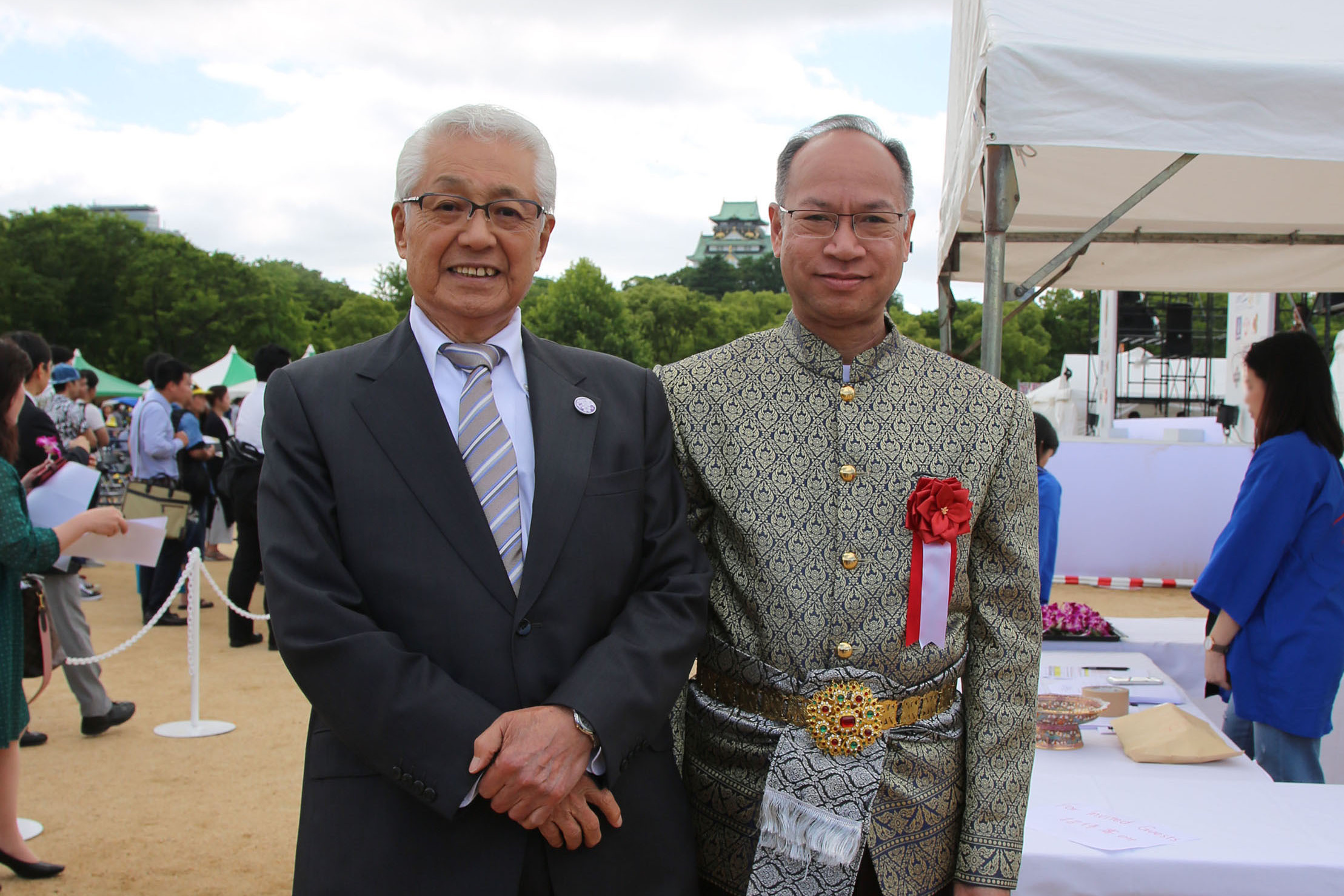 平成30 年5 月19 日、大阪城公園 太陽の広場にて執り行われた、第16 回タイフェスティバル大阪へ、タイ王国総領事ムニン・パーニサワット氏より御招待を賜り、念佛宗理事長が出席しました。