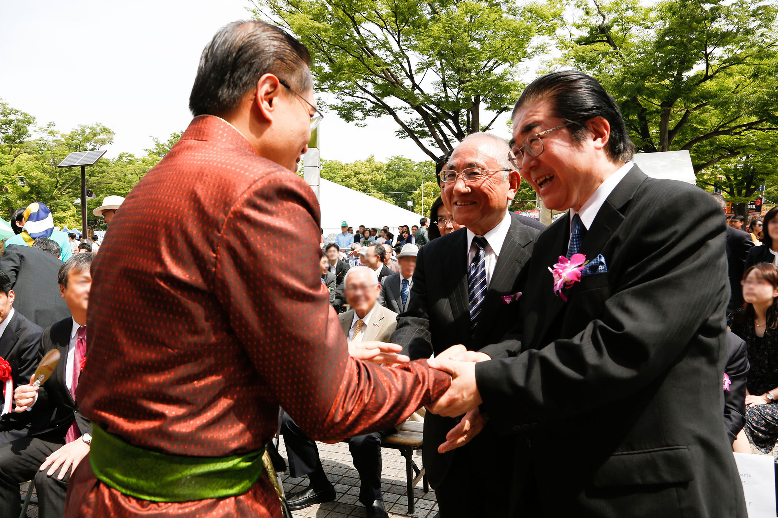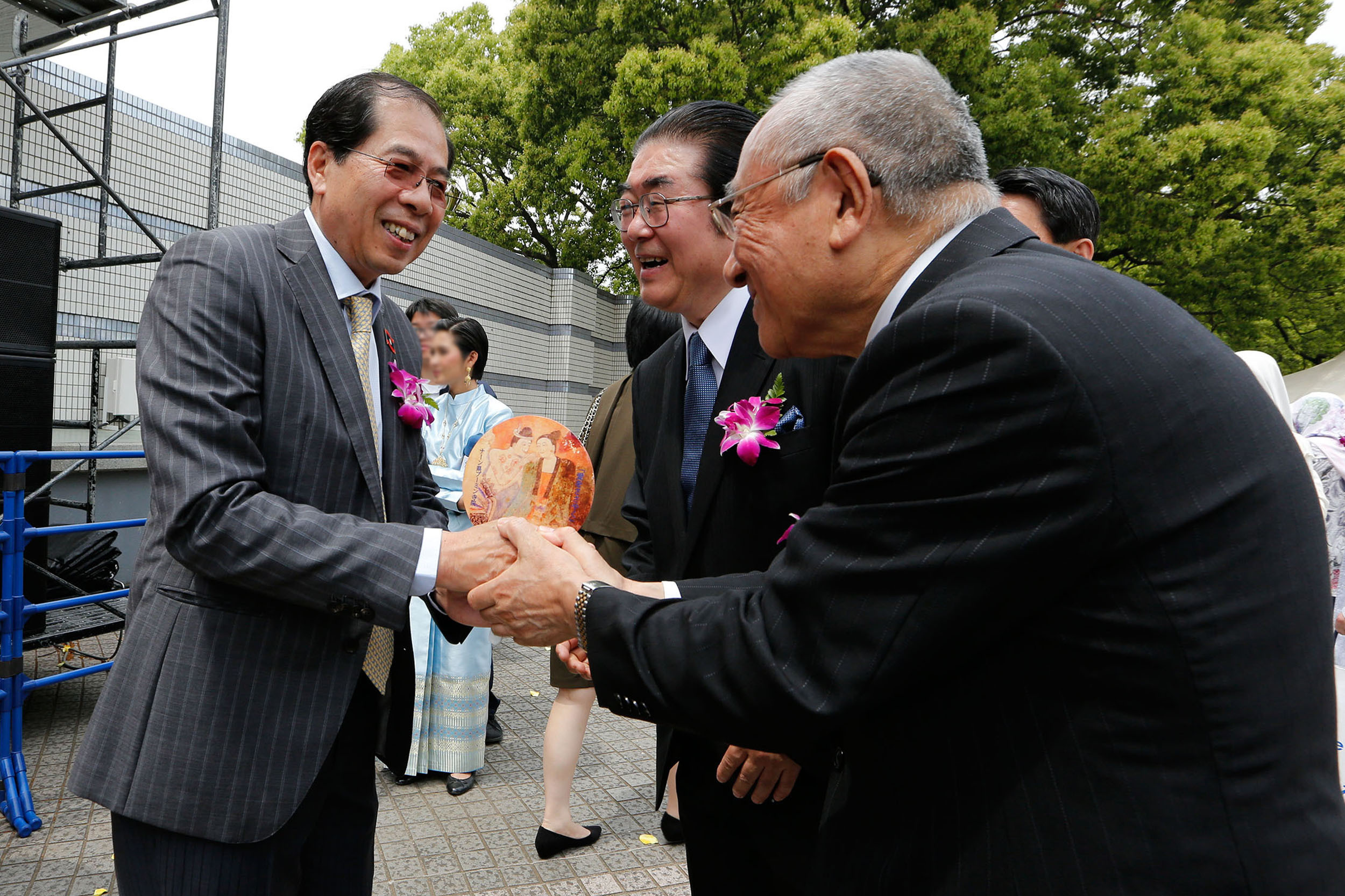 駐日ラオス特命全権大使閣下と親しく握手が交わされる