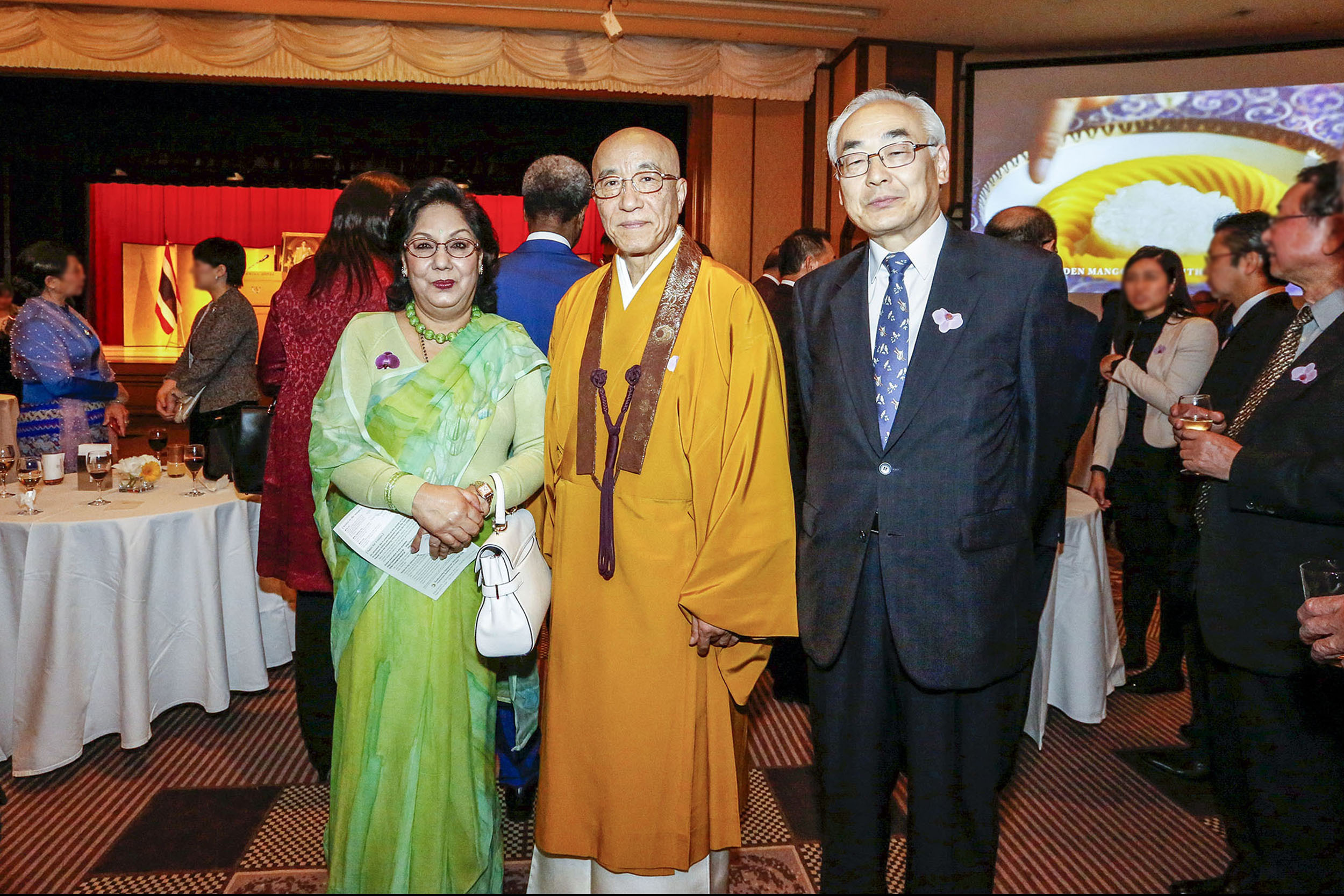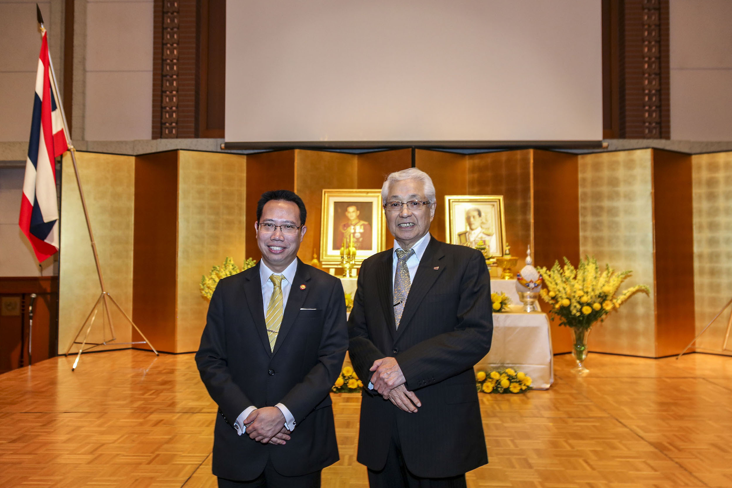 駐日タイ王国大使閣下は、 「本年も、故プミポン国王陛下の追悼大法要を、『佛教之王堂』にて執り行って頂き、誠に有難うございます。タイ王国の国民は深く感謝しております」と述べられました。