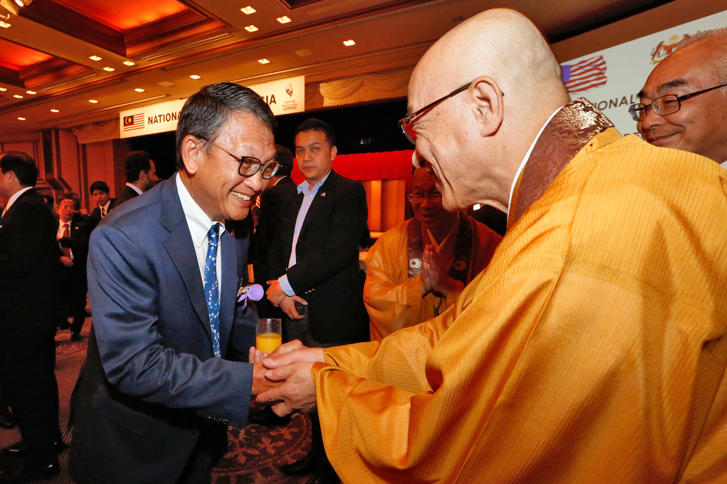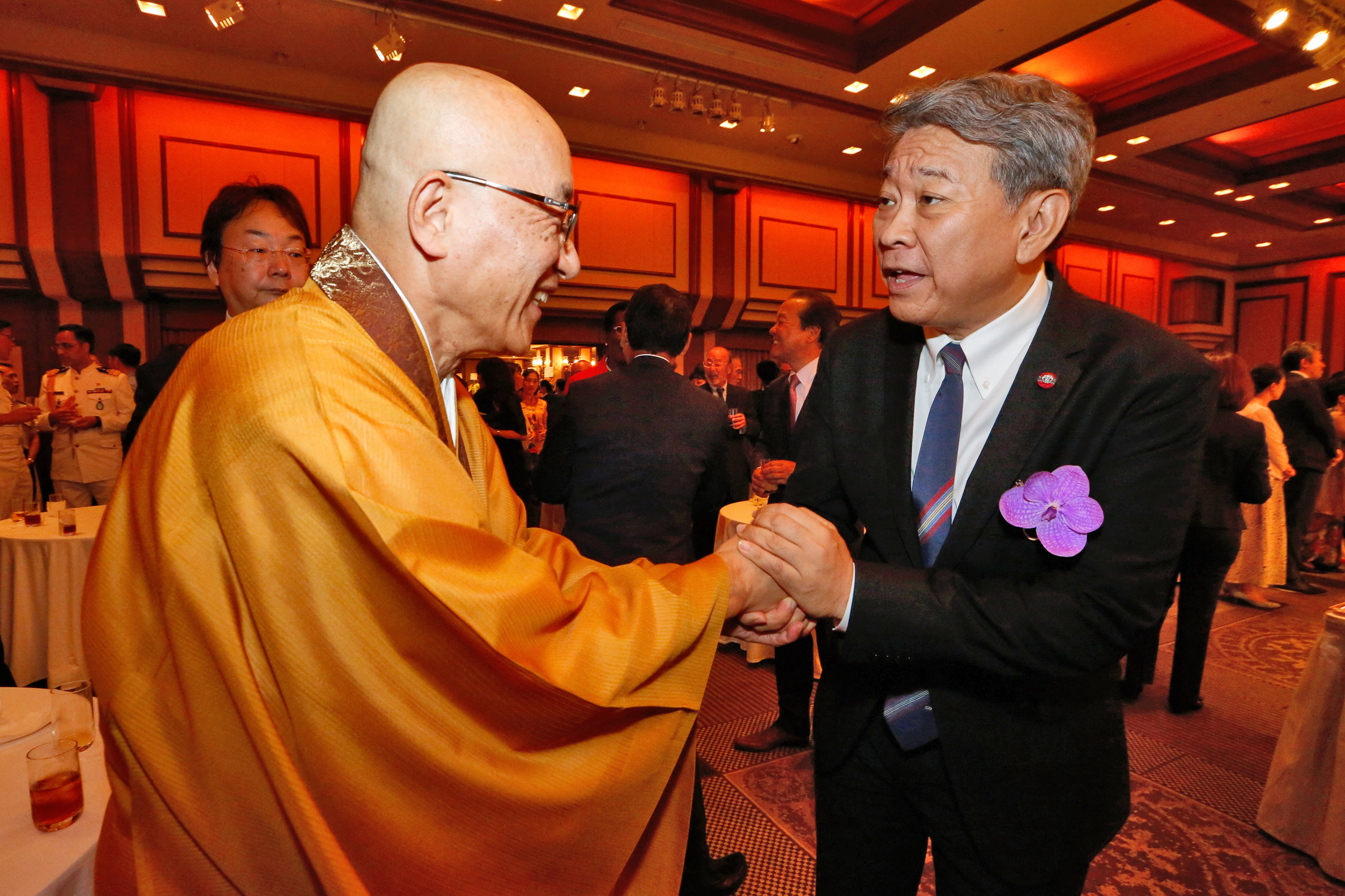 祝賀会には、タイ王国、カンボジア王国、インドネシアを始め、各国の駐日特命全権大使閣下が出席され、郡真海長老と再会を喜び合われ、親睦が深められました。