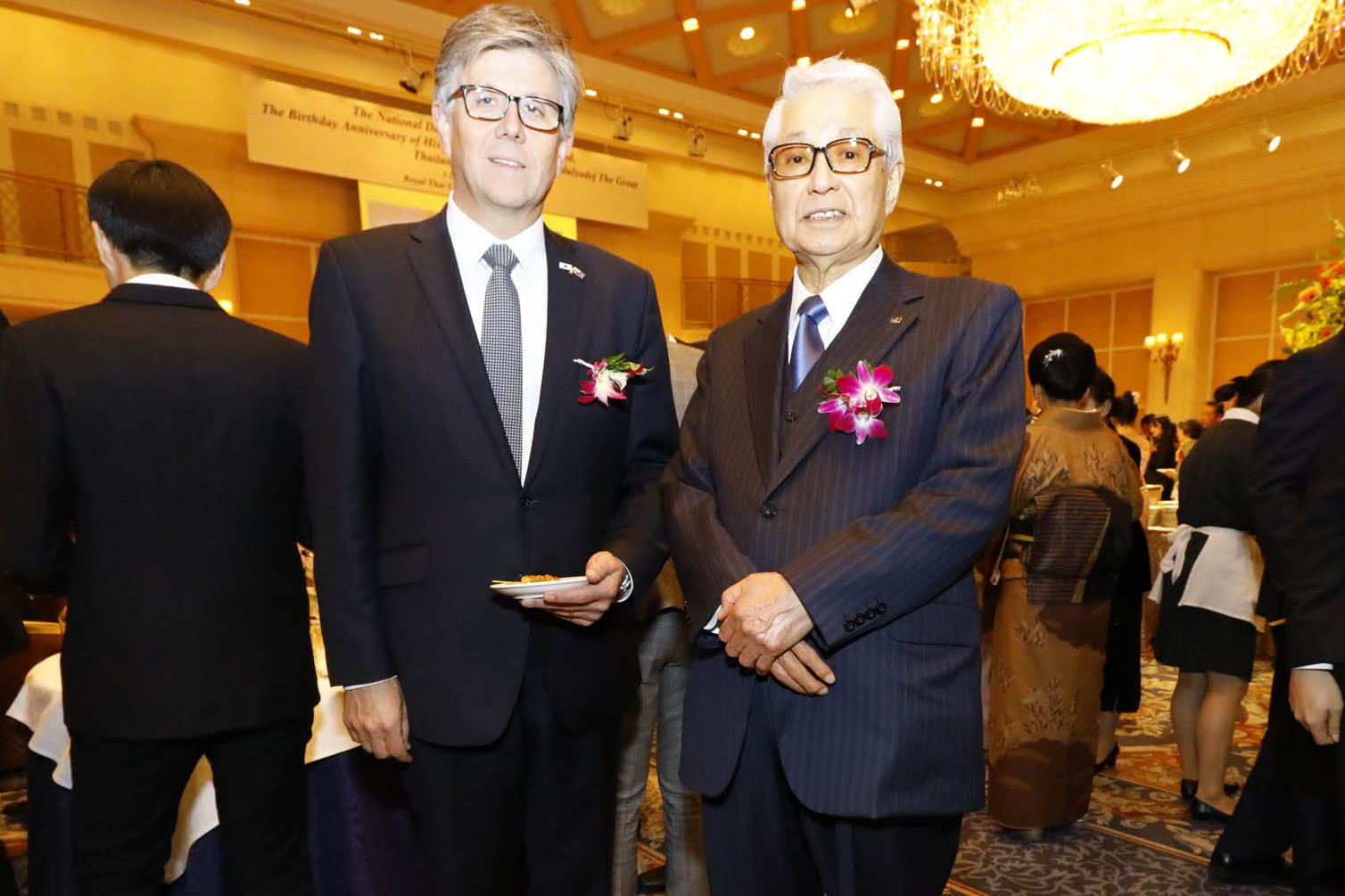 帝国ホテル東京、及び、帝国ホテル大阪にて開催された、タイ王国国王陛下への感謝を国を挙げて表する、タイ王国「国家の日」祝賀会へ、駐日タイ王国特命全権大使 シントン・ラーピセートパン閣下御夫妻、並びに タイ王国総領事 クリット・タンカナラット氏より御招待を受けました。