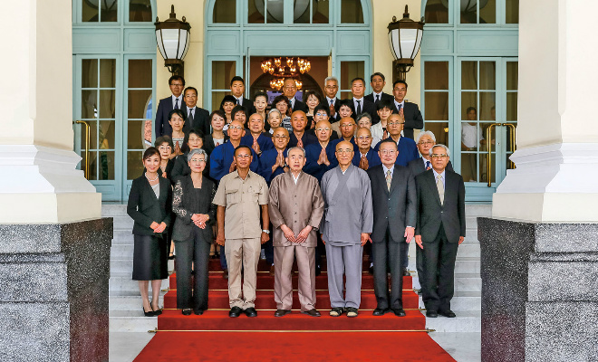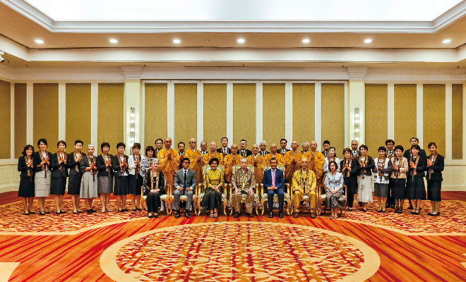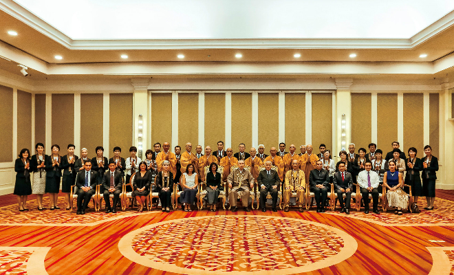 ノロドム・アルンラズメイ王女殿下 御家族、フム・チェイム宗教大臣閣下、ヴァーン・ヴァン宮内庁儀典長閣下が、表敬に訪れられました。共に再会を喜び合われ、カンボジア王国、そして世界の仏教の未来について語り合われ、大きな夢に向かう志をいっそう強くされました。