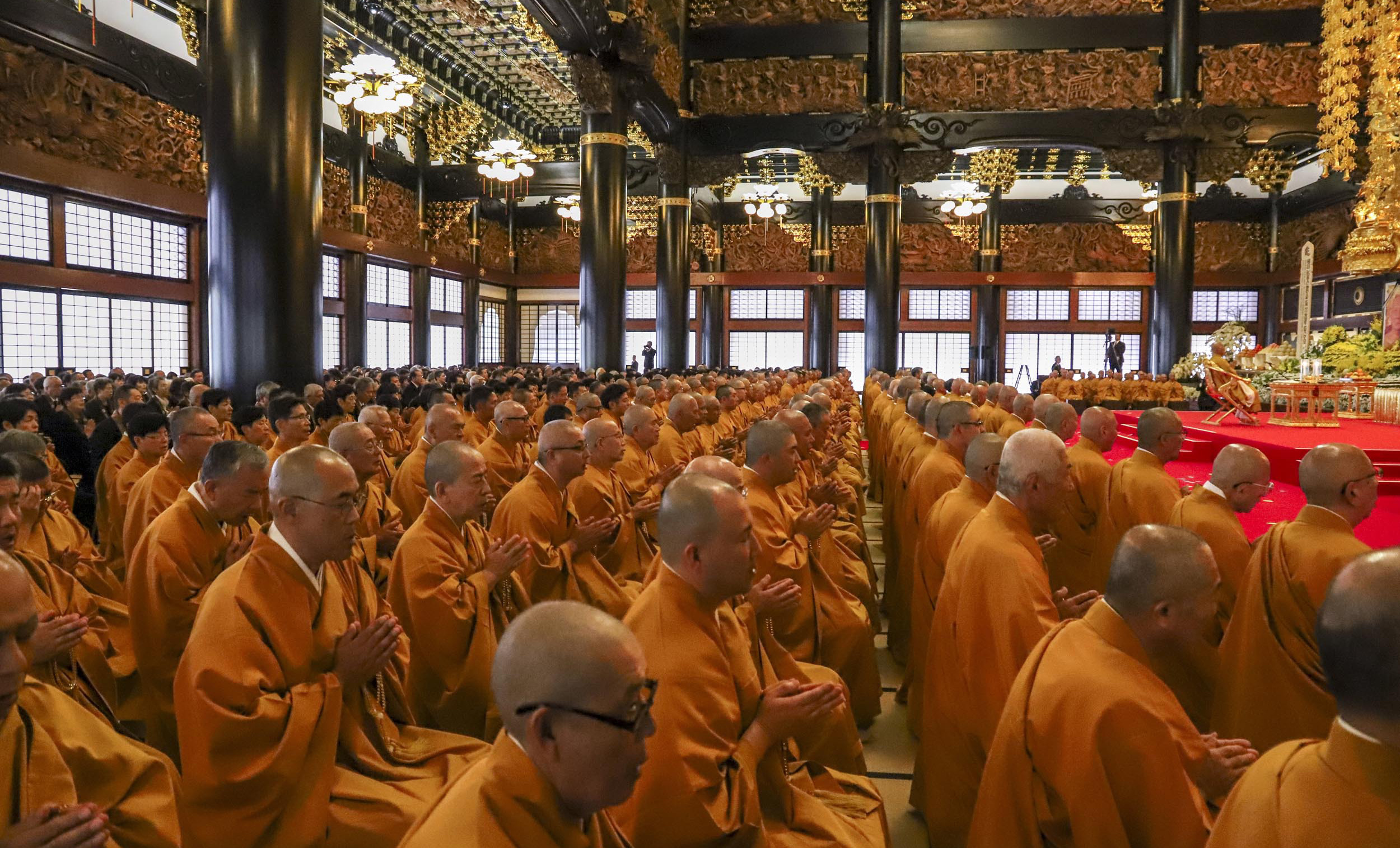 堂内を埋め尽くす僧侶・参列者による読経
