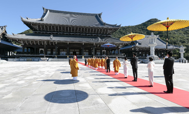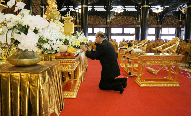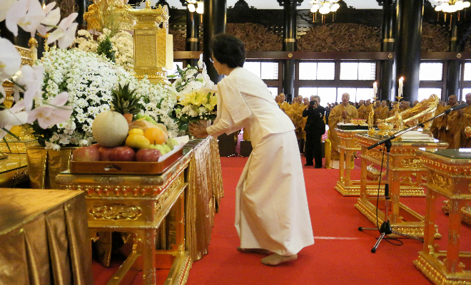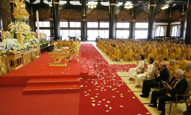 平成 28 年 10 月 15 日、カンボジア王国王室より、ノロドム・マリー王女殿下、ノロドム・ラトナ・ デヴィ王女殿下、在日本カンボジア王国大使館 チャウ・ソティラ氏が、総本山「佛教之王堂」にて 執り行われた、カンボジア王国 ノロドム・シアヌーク前国王陛下の追悼大法要に参列されました。