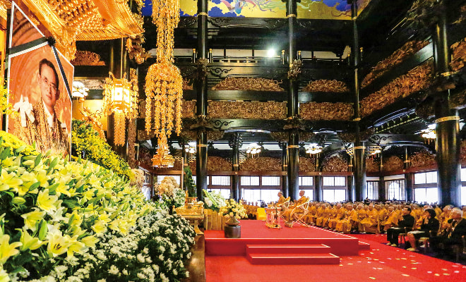 故 プミポン国王陛下の恩徳を偲び 盛大かつ厳粛に執り行われた