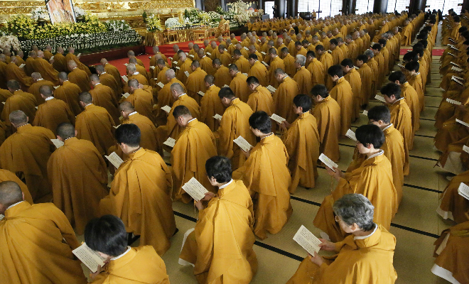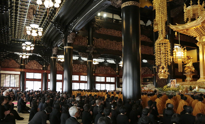 御堂にこだまする 陛下を偲ぶ 念仏の声