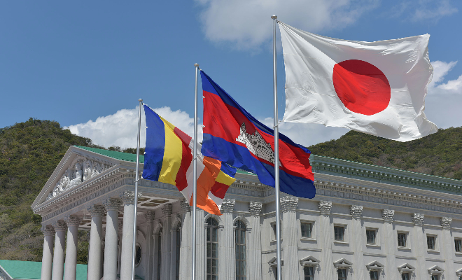カンボジア王国 国歌「王国」・日本 国歌「君が代」を 静聴 斉唱される