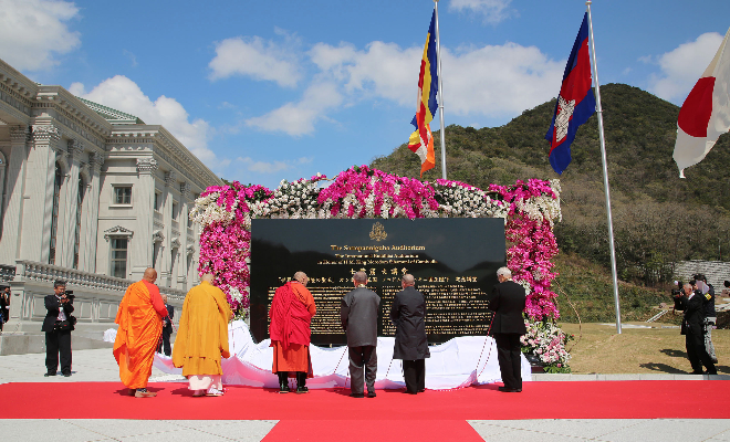 「世界佛教 興隆の聖王」カンボジア王国 ノロドム・シハモニ国王陛下 記念講堂