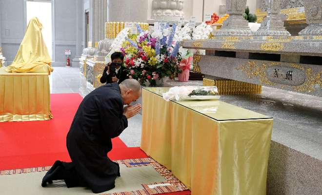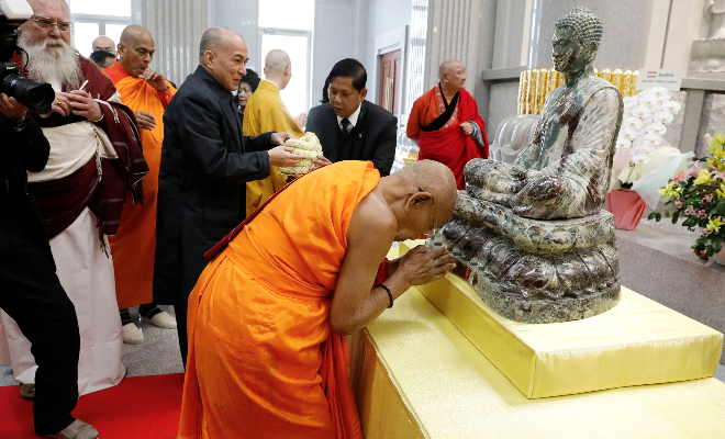 奉納仏に 各国の仏教最高指導者より 合掌礼拝が捧げられる