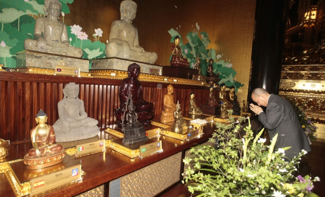 5月16日の御来日から22日の御帰国までの国賓公式御日程の中、国王陛下御自身のたっての御希望により3日間にわたって念佛宗を御参詣になりました。