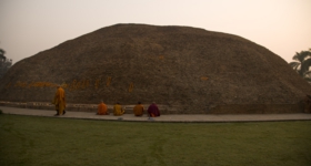 八大王はこれを奪わんと軍を率いて到来しましたが、八ヶ国に公平に分けられ戦争に至りませんでした。スリランカには、その一部が、アショーカ王の子、マヒンダにより紀元前三世紀に伝えられました。