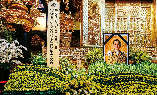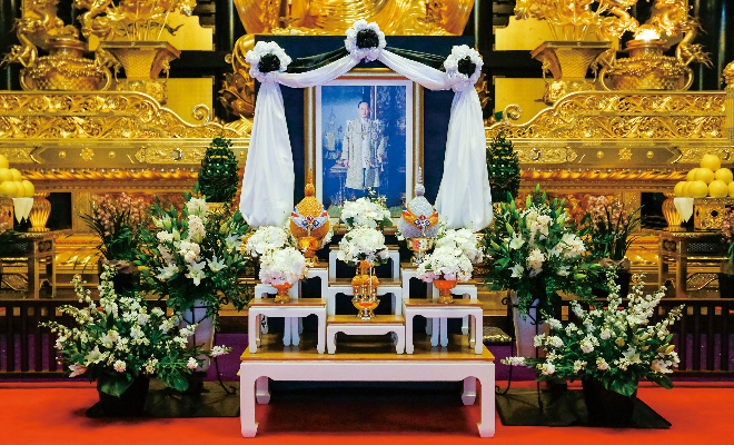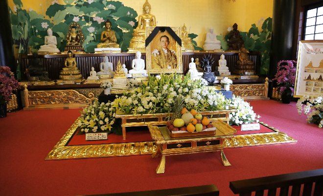 タイ王国の伝統に則った 故プミンポン・アドゥンヤデート国王陛下の祭壇