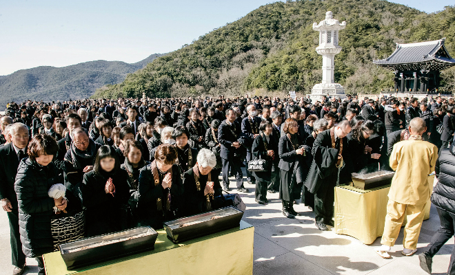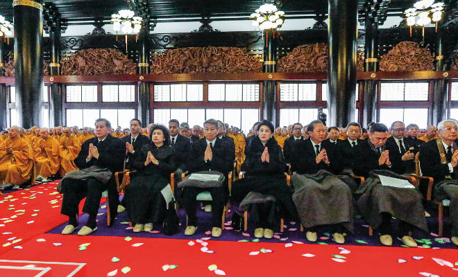 本堂を埋め尽くす 来賓 僧侶 尼僧 参列者