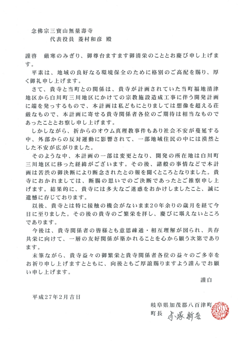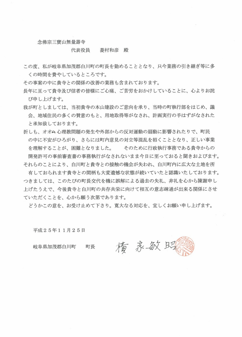 が総本山へ。過去の経緯を謝罪され、和解致しました。